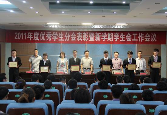 9月6日下午,我院2011年度优秀学生分会表彰大会暨新学期学生会工作会议在学术报告厅举行。院党委副书记刘卫锋出席会议,团委书记谷献晖、副书记李聪,学生处宿舍管理科柴杉及各系学生工作负责人参加了会议。会议由李聪主持。