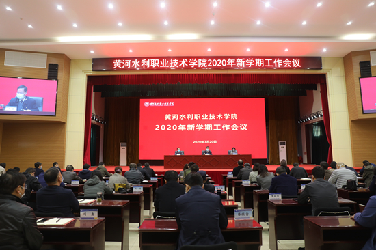 党委副书记、校长祝玉华代表校党委对2019年工作做了总结和回顾,对2020年党政工作进行了安排部署。一是加强党的建设,以高质量党建推动学校事业高质量发展。要进一步加强党对学校工作的全面领导,巩固和扩大“不忘初心、牢记使命”主题教育成果,夯实基层党组织建设,强化思想政治引领,加强干部队伍建设和党风廉政建设,扎实开展精神文明创建和宣传、统战工作。二是加强内涵建设,打造技术技能人才培养高地。要落实立德树人根本任务,把劳动教育融入立体化育人体系,创新人才培养模式,构建高水平专业群,深入推进“三教”改革,全面深化创新创业教育,不断提升人才培养质量、学生管理服务水平和国际化办学水平。三是实施人才强校战略,建设一流师资队伍。要完善师德师风建设长效机制,继续加大高层次人才引培力度,持续推进高水平“双师型”教师队伍建设。四是深化产教融合,不断提升社会服务水平。要进一步深化校企合作,提升科研与技术服务能力,开展高质量职业技术技能培训,持续助力精准扶贫。五是加强治理体系建设,提升学校治理水平。要进一步加强和完善学校制度体系建设,深入推进治理能力建设,全面推进智慧校园建设。六是做好服务保障工作,支持学校事业高质量发展。要做好疫情防控工作、校园安全稳定工作、校友工作和群团工作,推进校园基本建设,办好民生实事。她希望全体教职工坚定信心、奋发有为,以更高站位、更宽视野、更远眼光,只争朝夕,不负韶华,奋力谱写黄河水院砥砺发展的新篇章,为中原更加出彩作出新的更大贡献。