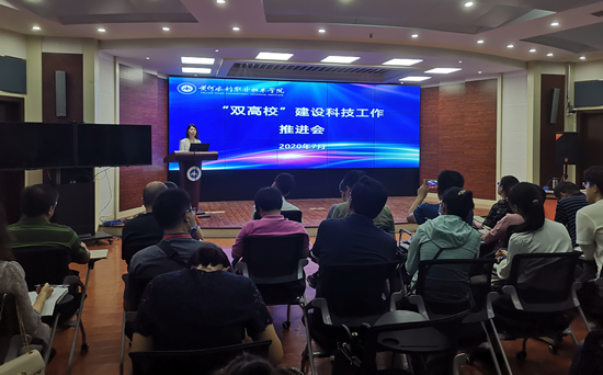 为进一步全面落实“双高校”建设任务,打造技术技能创新服务平台,不断提升科技服务能力和水平,7月10日上午,我校召开“双高校”建设科技工作推进会。副校长焦爱萍出席会议并做总结讲话。各学院(部)院长(主任)及主管科研工作副院长(副主任)、各级科技创新平台负责人、全校具有博士学位的教师参加会议。会议由科技处处长杨中华主持。