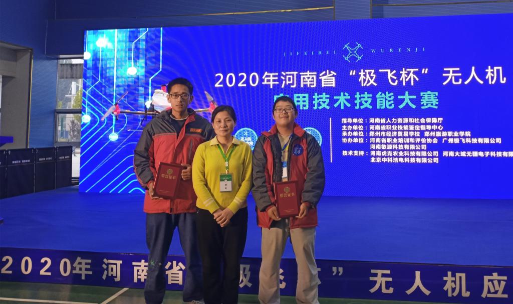 10月25日至26日,2020年河南省“极飞杯”无人机应用技术技能大赛在郑州经济贸易学校职教园新区举行。我校测绘工程学院摄影测量1803班谢博炎、摄影测量1904班王亚林在张辉老师指导下,作为开封赛区唯一代表队参加无人机编队赛项学生组比赛,以总分第一的成绩取得了大赛一等奖。
