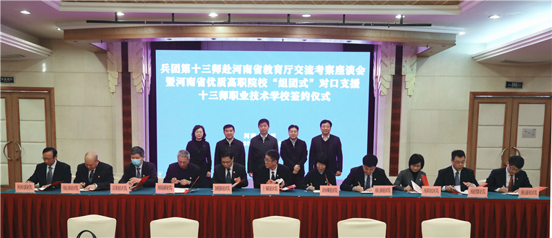 我校将对十三师职业技术学校在专业建设、师资力量、实习实训设备、教学管理等方面提供对口支援,帮助十三师职业技术学校改善办学条件,提升内涵质量,更好地服务兵团经济社会发展。(供图:对外联络与合作处)