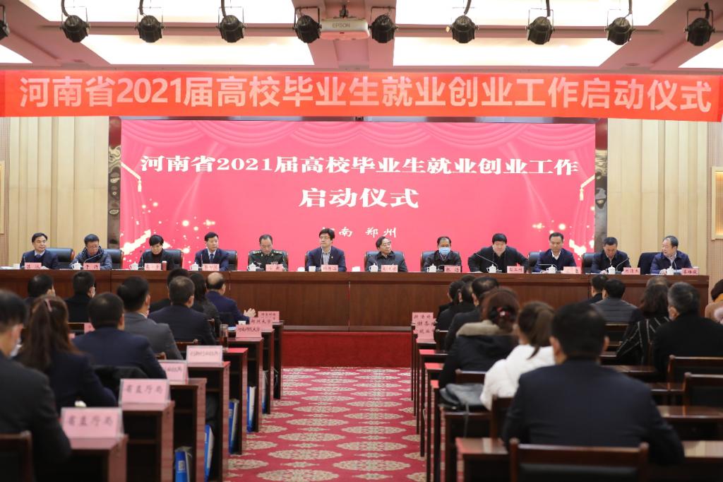 12月15日,省教育厅在郑州举办2021年全省高校毕业生就业创业工作启动仪式,省发展改革委、省工信厅、省财政厅、省人社厅、省退役军人事务厅、省国资委、省军区动员局、团省委、省妇联等部门领导出席会议,省教育厅党组书记、厅长郑邦山在会议上做了重要讲话,我校校长祝玉华应邀在郑州主会场参加会议并做典型经验交流发言。会议由教育厅学生处处长李培俊主持。
