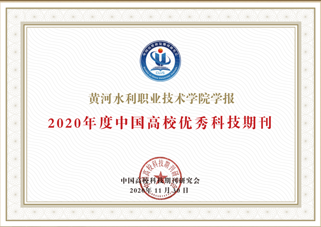 此次评奖是中国高校科技期刊研究会根据北大核心数据、CSCD数据、科技核心数据、知网学术评价数据、万方扩刊版数据、中信所精品科技期刊和百杰期刊、知网国际影响力数据等,经过加权计算,从中国高校科技期刊研究会原有1000多家单位会员(期刊)中遴选出部分杰出、百佳、优秀期刊。2020年度河南省有15种期刊入选优秀期刊,《黄河水利职业技术学院学报》是河南省高职高专学报中唯一入选的期刊。