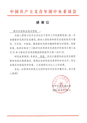 近日,为感谢我校积极参与制定团中央《新时代共青团员先进性评价指导大纲(试行)》和《新时代共青团激励机制指导大纲(试行)》,共青团中央基层建设部特向我校发来感谢信。