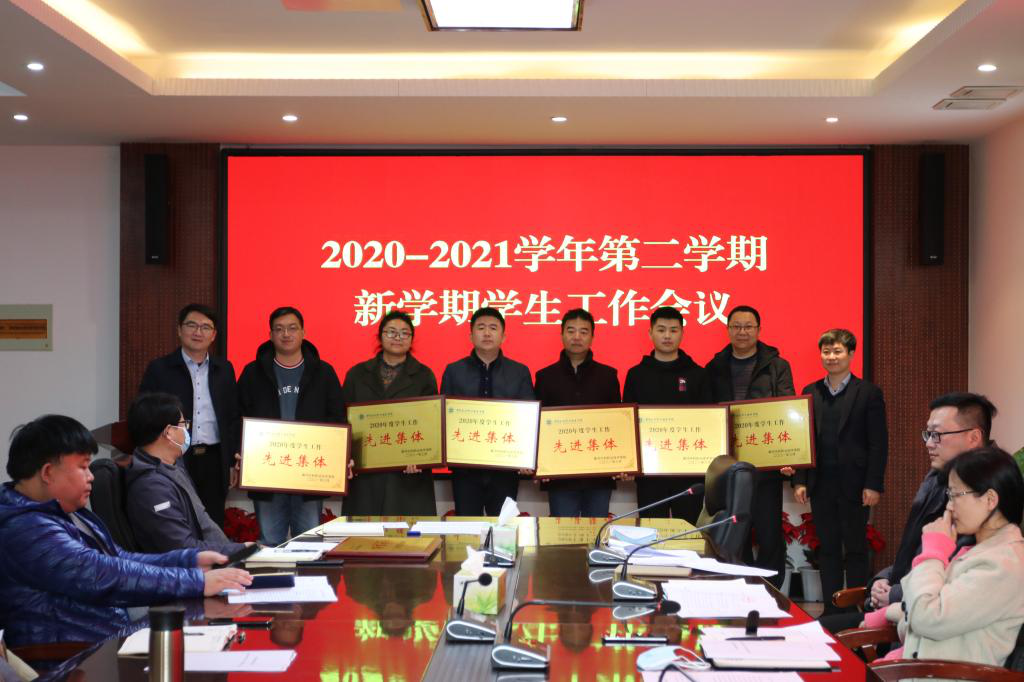 学生工作部副部长霍卫红宣读了《关于表彰2020年度学生工作“先进集体”与“先进个人”的决定》。柴杉对新学期的返校工作进行了部署。大会为受表彰的集体颁发了奖牌。