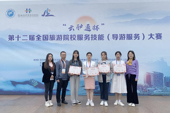5月13日至16日,第十二届全国旅游院校服务技能(导游服务)大赛在青岛酒店管理职业技术学院隆重举行。我校旅游学院张馨戈同学以总分91.343的成绩获得高校中文组一等奖,孔孜慧同学获得高校中文组二等奖,黄晓翠、邵雨杰同学获得高校英文组三等奖。这是我校第三次在该赛项中荣获全国一等奖。