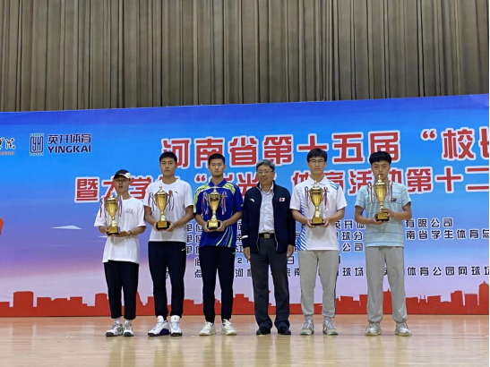 2021年5月10日-16日,河南省第十二届大学网球锦标赛成功举办。我校代表队派出五名运动员参加四个项目的角逐,夺得专科甲组男子团体冠军、男子双打冠军、女子单打亚军、男子单打亚军的辉煌战绩。