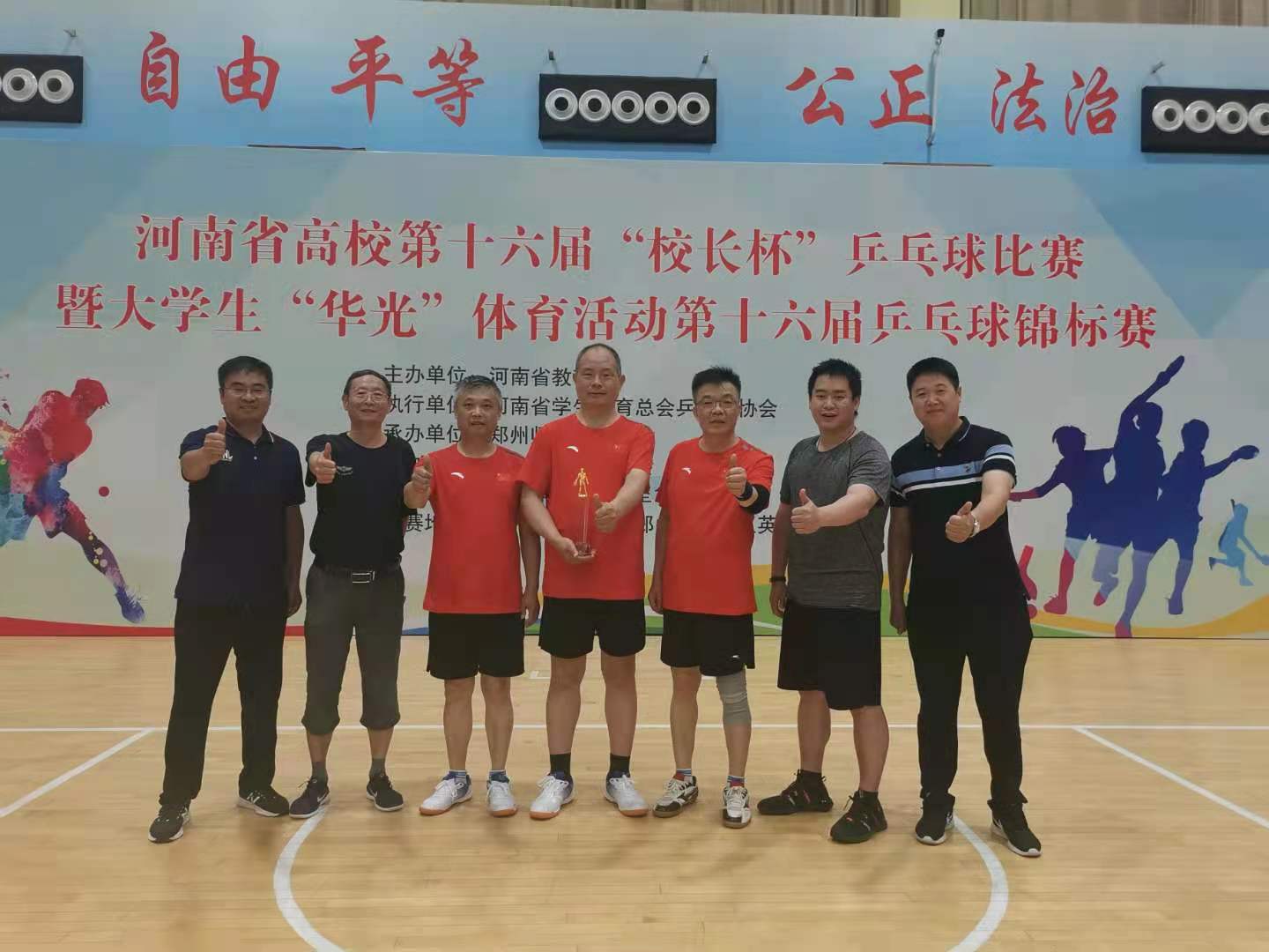 6月11日至13日,由河南省教育厅主办的河南省高校第十六届“校长杯”乒乓球赛在郑州师范学院举行。我校代表队奋力拼搏,荣获比赛亚军。