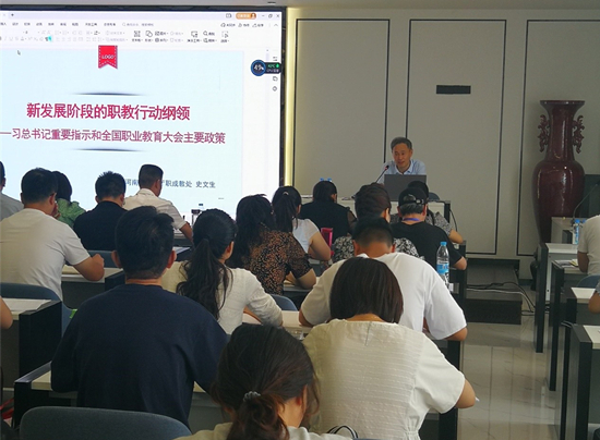 河南省教育厅职成教处副处长史文生到我校为“双师型”教师培训班做报告
