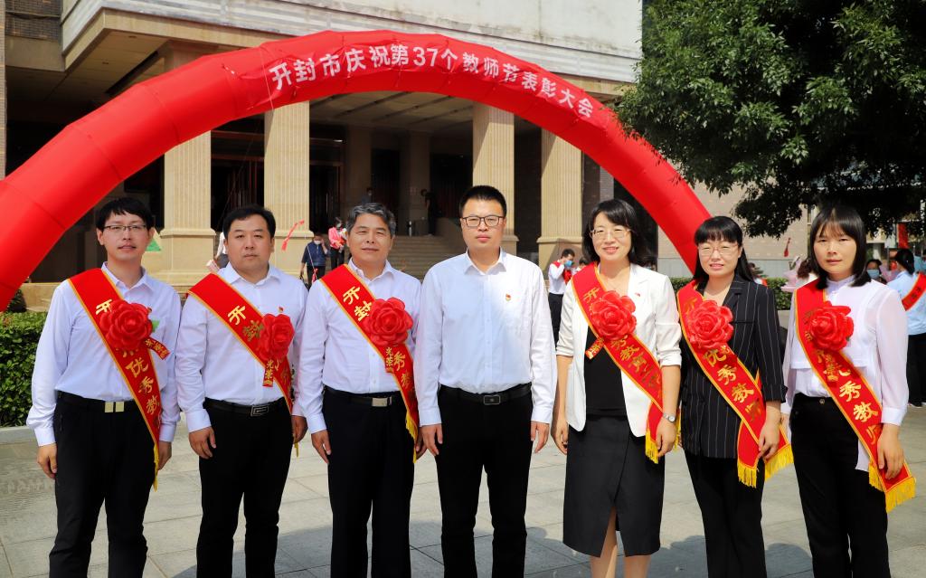 大会表彰了2021年开封市师德先进个人、最美教师、优秀教师和优秀教育工作者等一线教师,我校教师关莉莉、何宽、姬尧、王付全、闫灵芝、马晓慧等6名教师受到表彰。