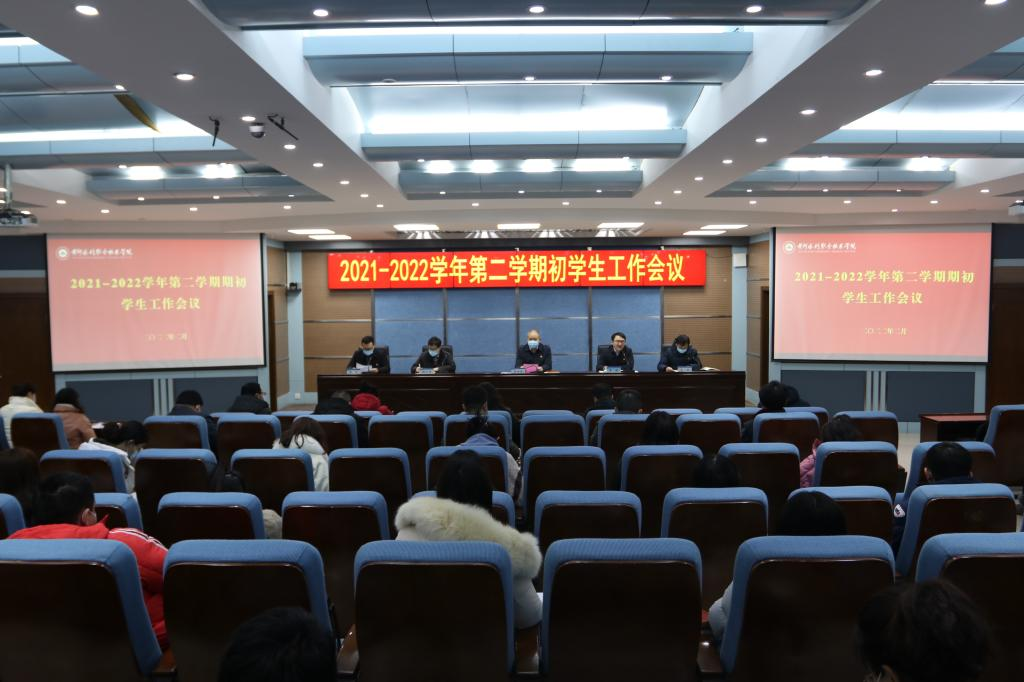 2月16日上午,我校在3号实训馆学术报告厅召开新学期学生工作会议。校党委副书记、工会主席杨士恒出席会议并讲话,学生工作部(处)、“一站式”学生社区党工委、团委全体人员、各学院学生工作主管领导以及全体辅导员参加会议。会议由学生工作部副部长柴杉主持。