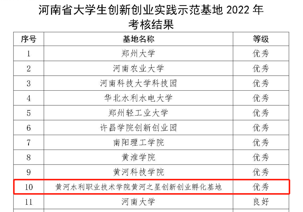 5月5日,河南省教育厅对河南省大学生创新创业示范基地考核及“创响中原”2022年大学生创业培优计划评选结果进行公示。我校黄河之星创新创业孵化基地获评河南省大学生创新创业实践示范基地考核优秀,并且是唯一一所获评优秀的高职院校。我校黄志伟老师指导的“便携式高精度圆孔自定心多功能划线仪”项目,入选“创响中原”2022年河南省大学生创业培优计划项目。