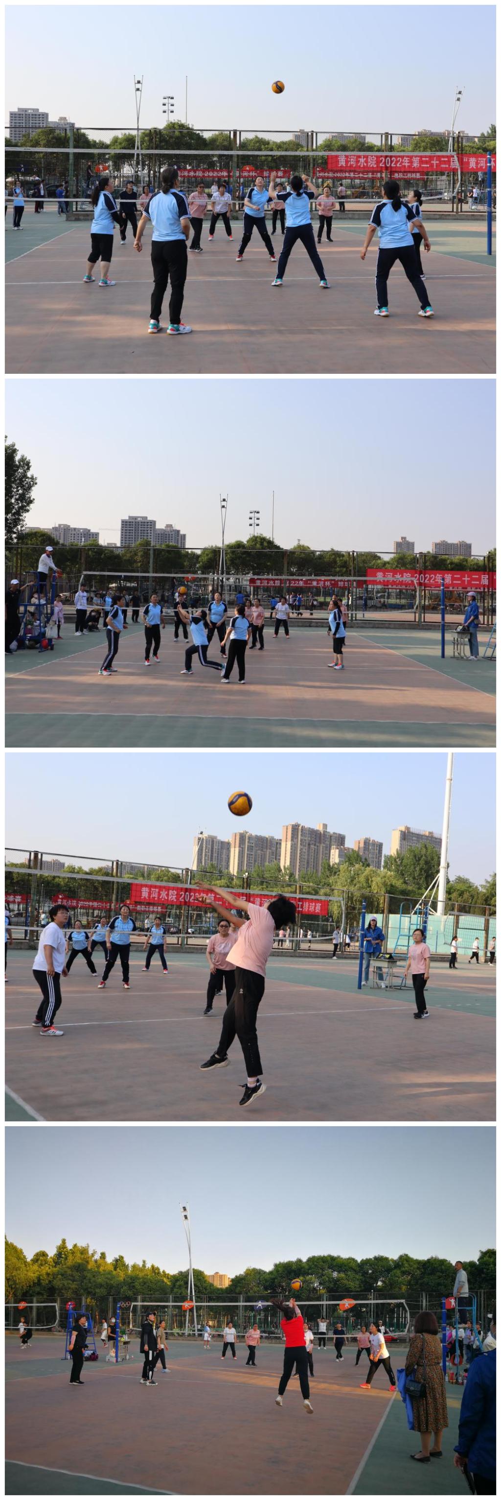 为响应全民健身号召,展现我校教职工精神风貌,增进教职工身心健康,增强教职工集体凝聚力和团队协作精神,5月9日至5月23日,我校举办第二十二届“黄河杯”教职工排球赛,来自18个分工会的36支男女代表队参加比赛,水利工程学院、马克思主义学院分获男、女组冠军。