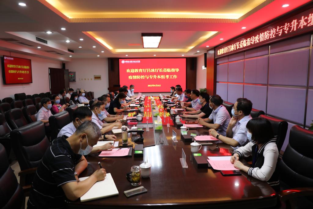 6月6日上午,省教育工委专职委员吕冰一行到我校检查指导疫情防控和专升本组考工作,工作座谈会在行政楼第一会议室召开。开封市政府副秘书长王亚文,我校党委书记周保平,校党委副书记、校长胡昊及相关校领导,开封大学、开封文化艺术职业学院、商丘学院应用科技学院相关领导参加座谈会。