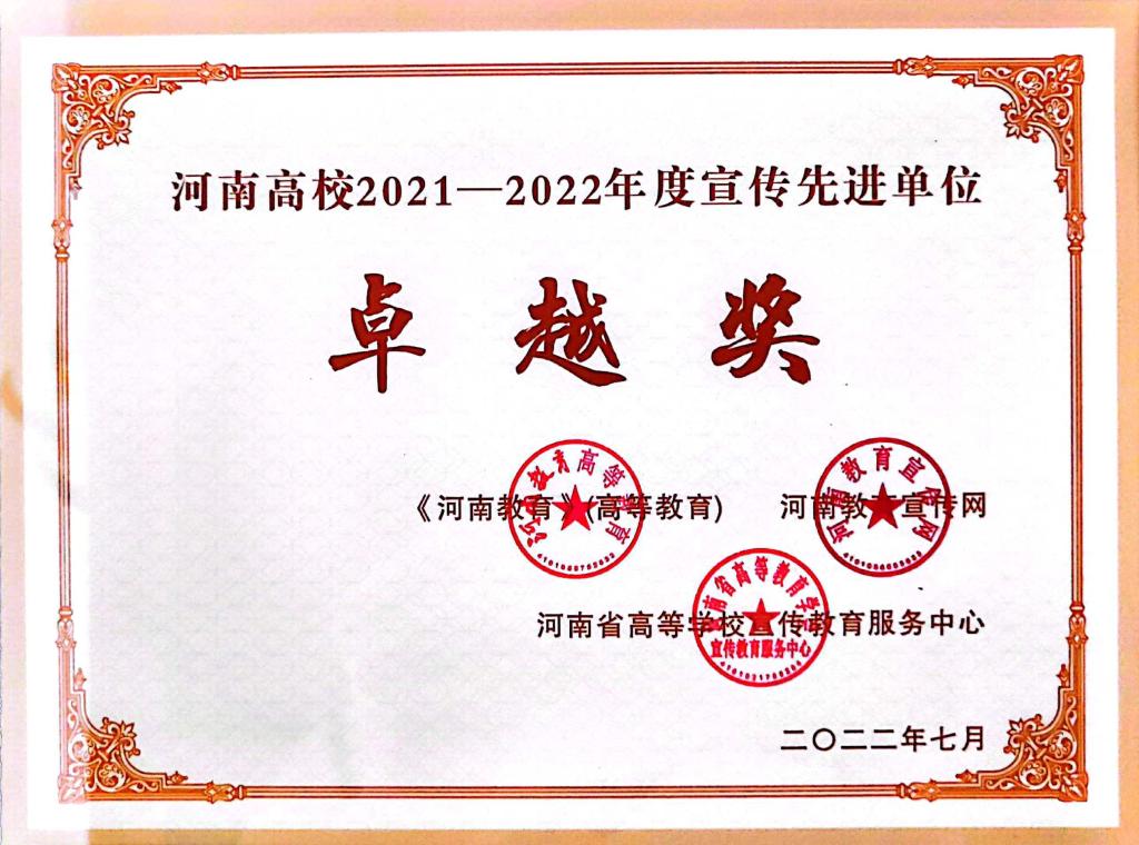 近日,河南高校2021—2022年度宣传工作评选结果揭晓,我校获评河南高校2021-2022年度宣传先进单位卓越奖,1人获优秀通讯员,2篇新闻获优秀新闻作品二、三等奖。