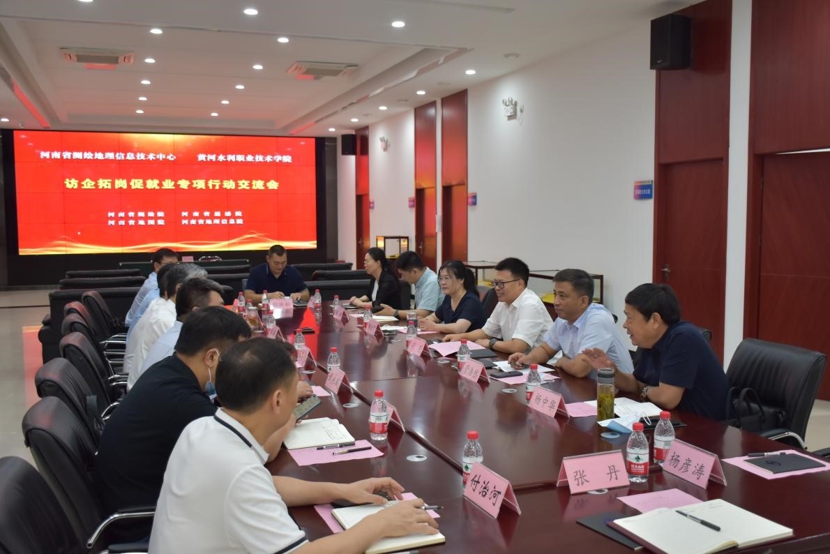 为深入贯彻落实党中央、国务院关于“稳就业”“促就业”的决策部署,根据教育部和省教育厅关于开展全国高校书记校长访企拓岗促就业专项行动的通知精神和要求,7月28日,校长胡昊带队到河南省测绘地理信息技术中心、河南省测绘院、河南省遥感院、河南省地图院、河南省地理信息院等单位开展访企拓岗促就业专项行动。副校长菅浩然,党政办公室、教务处、科技处、招生就业服务中心、测绘工程学院等部门负责人参加活动。