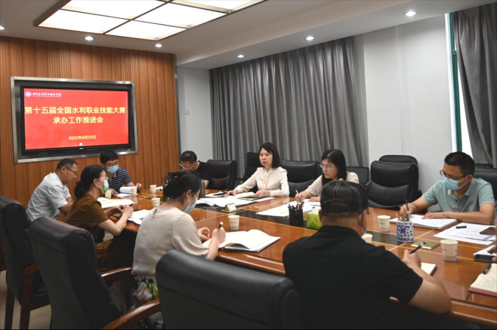 为确保第十五届全国水利职业院校技能大赛在我校顺利举办,8月25日上午,我校在行政楼第三会议室召开第十五届全国水利职业院校技能大赛承办工作推进会。副校长焦爱萍出席会议,大赛承办各工作组负责人及教务处相关人员参加会议。会议由教务处处长陶永霞主持。