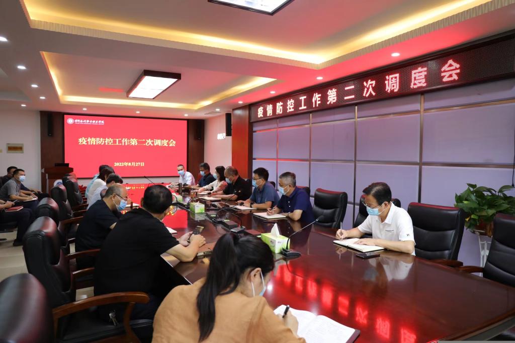 8月27日,我校在行政楼第一会议室召开疫情防控工作第二次调度会,对疫情防控工作进行再部署再落实。党委副书记、校长胡昊,党委副书记、工会主席杨士恒,副校长焦爱萍、刘玉宾、菅浩然、刘守义,纪委书记朱焕立等校领导出席会议。校疫情防控领导小组各工作专班负责人参加会议。胡昊主持会议。