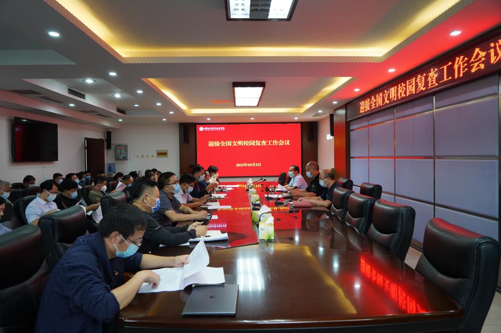 为迎接全国文明校园复查工作,10月2日,我校在行政楼第一会议室召开文明校园工作复查会。校党委副书记、工会主席杨士恒出席会议,全校各部门各单位主要负责人参加会议。党委宣传部副部长杜丙辰主持会议。