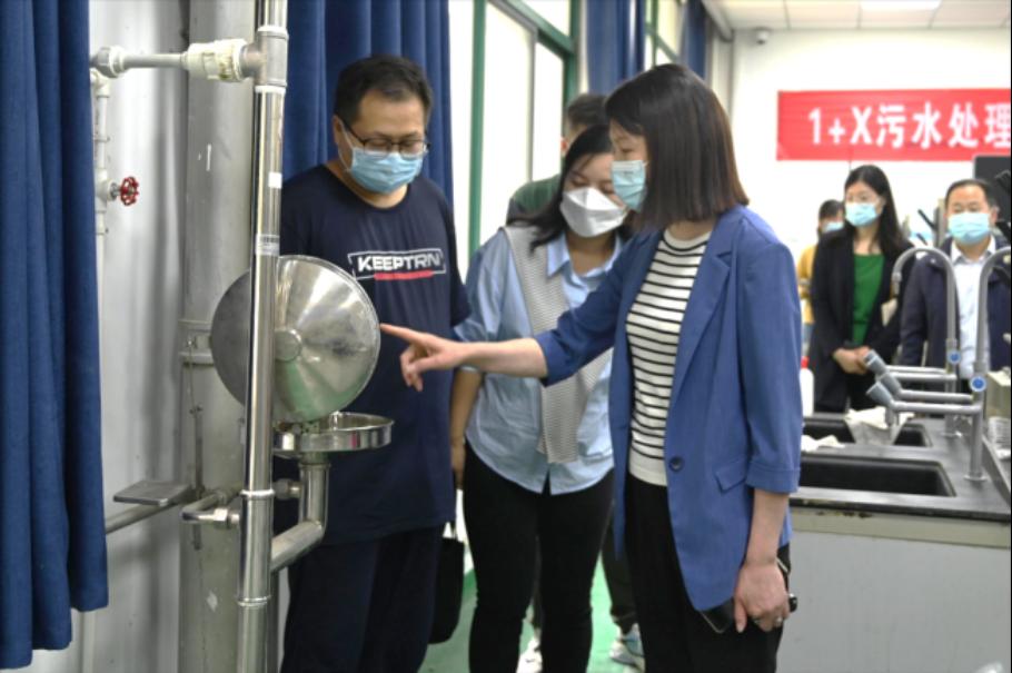 检查组一行深入水利工程学院、测绘工程学院、机械工程学院和环境工程学院等教学院部实训中心,重点对设备运行、危化品管理、用电安全、实训管理队伍建设和环境卫生等工作情况进行查看,现场听取实训室安全月开展情况汇报。