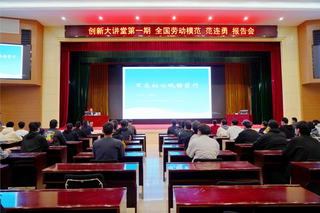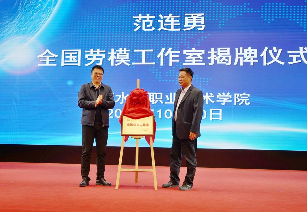 报告会上,胡昊为范连勇颁发了黄河水利职业技术学院首席技能大师证书,为全国劳模范连勇创新工作室揭牌。