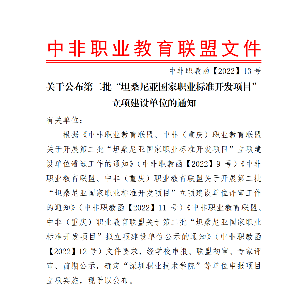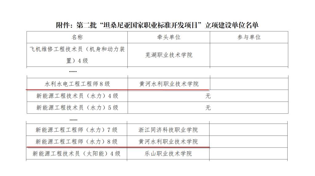 根据《中非职业教育联盟、中非(重庆) 职业教育联盟关于开展第二批“坦桑尼亚国家职业标准开发项目”立项建设单位遴选工作的通知》(中非职教函【2022】9号)安排,10月9日,中非职业教育联盟对通过初审的申报单位开展项目遴选线上评审,水利工程学院院长雷恒带领水利水电工程技术专业、水电站动力设备专业团队,采用“陈述+答辩”的方式,围绕申报行业岗位,从专业基础、师资队伍、国际合作交流、同类项目经验、保障措施、经费安排等方面进行了汇报。经过专家评审,我校申报的“水利水电工程工程师NTA 8”和“新能源工程工程师(水力) NTA 8”项目顺利通过评审,被确定为“坦桑尼亚国家职业标准开发项目”第二批立项建设单位。