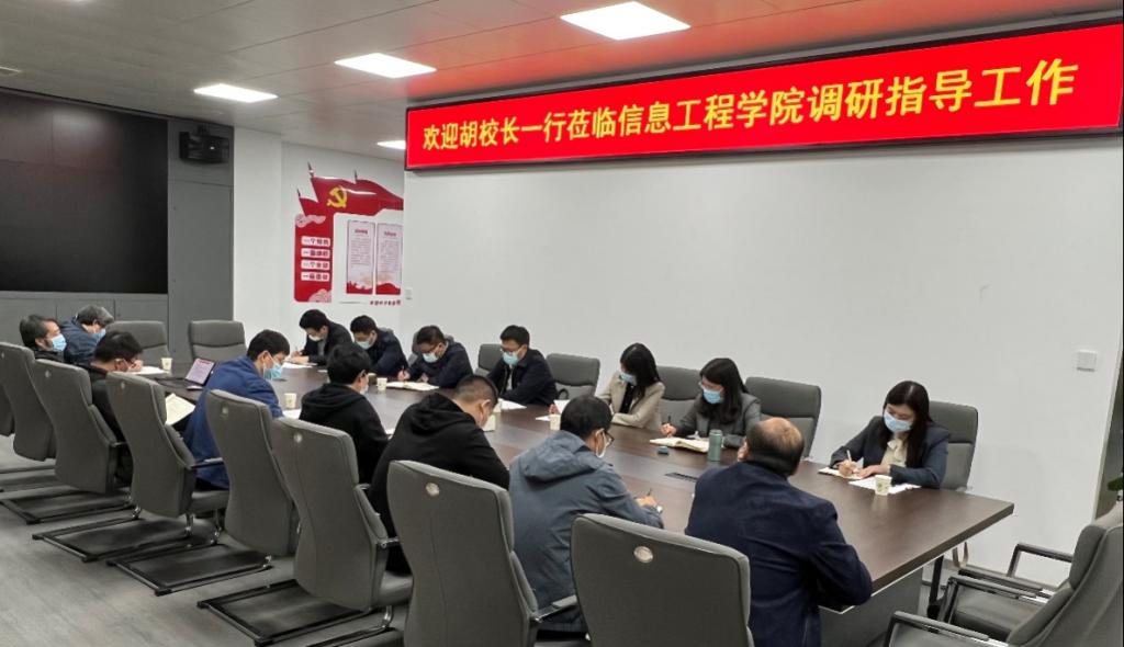 在调研信息工程学院时,胡昊充分肯定了信息工程学院发展所取得的成绩,并就信息工程学院专业布局、人才培养、高层次人才引培、产业学院建设等重点工作提出了具体指导意见。胡校长勉励学院要加强内外资源的挖掘整合,全院上下同心协力,把各项工作扎扎实实做好,为学校大发展做出新的更大贡献。