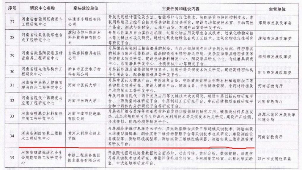 近日,河南省发展和改革委员会发布了《关于河南省有色金属先进制造工程研究中心等85个省工程研究中心的批复》(豫发改高技〔2022〕948号),经省教育厅推荐、省发展和改革委员会委托第三方机构评估、审核,我校测绘工程学院陈琳教授团队申报的“河南省测绘实景三维技术工程研究中心”获批准建设。