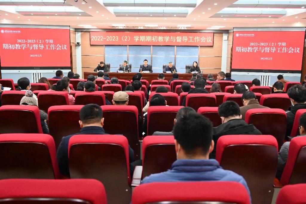 教务处处长陶永霞安排了期初教学运行和相关检查工作,并对2023年教学重点工作进行了详细安排部署。教育教学督导室主任冯涛总结了2022年度督导工作,并对2023年度的督导工作进行了安排部署。(供图:教务处 教育教学督导室)