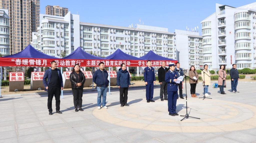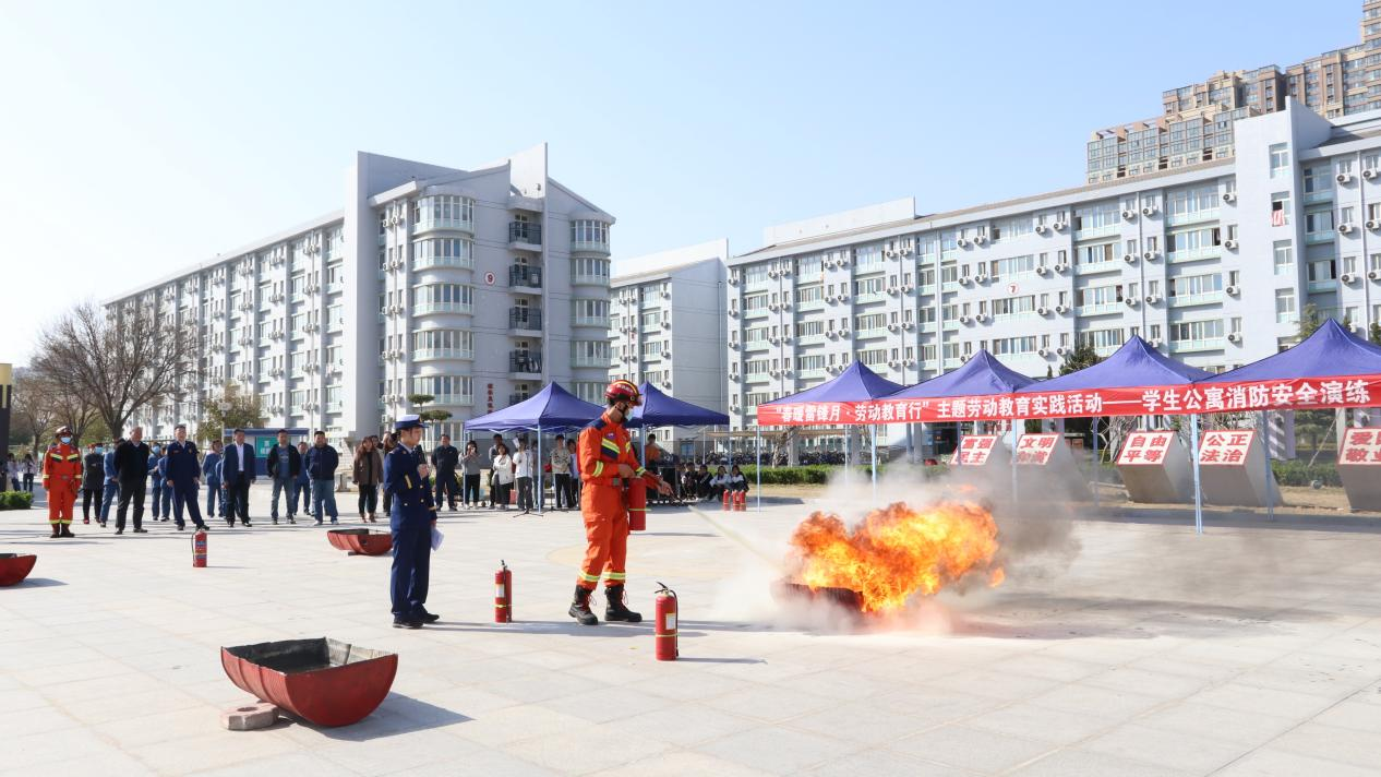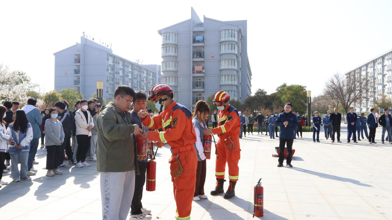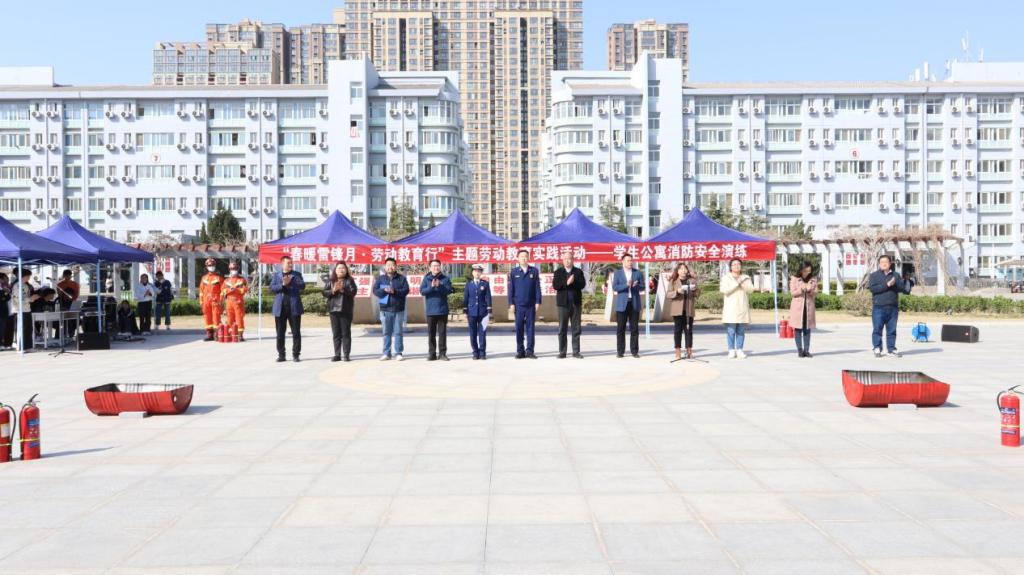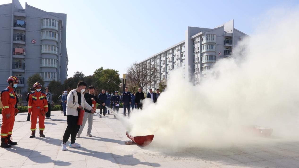 为了加强学生公寓消防安全教育,预防火灾和减少火灾危害,保护学生“人、财、物”安全,本着“预防为主,防消结合”的宗旨,3月14日下午,学生处、保卫处联合示范区消防救援大队,在扬帆广场和5号学生公寓开展学生公寓消防安全演练。校党委副书记、工会主席杨士恒,示范区消防救援大队大队长台安祥,示范区消防救援大队参谋张雪瑶出席此次活动,学生处处长李聪,保卫处处长任璐,团委副书记郝黎闻,各学院党总支副书记,169名学生义务消防宣传员及学生公寓工作人员共同参与活动,演练由学生处副处长牛钰主持。
