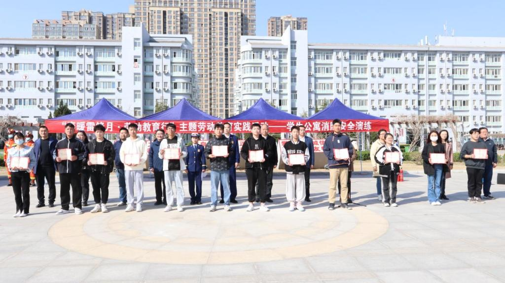 演练前,李聪宣读了学生公寓义务消防宣传员职责,杨士恒及其他参会领导为学生公寓义务消防宣传员代表颁发聘书。