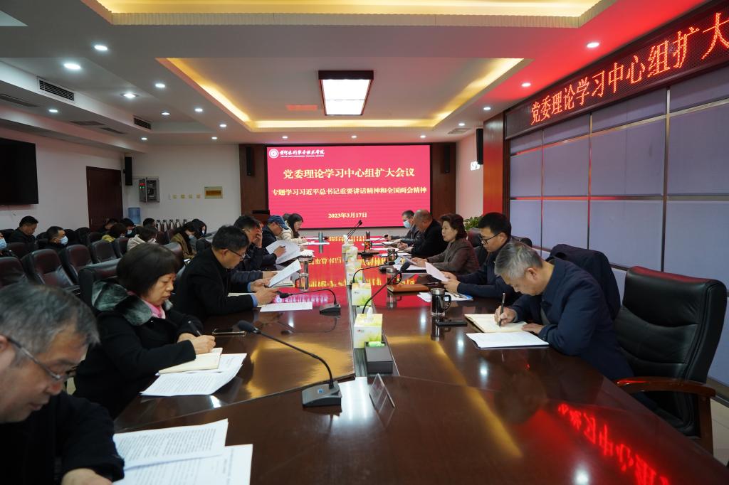 3月17日下午,校党委书记周保平在行政楼第一会议室主持召开校党委理论学习中心组(扩大)学习会议,专题学习习近平总书记重要讲话精神和全国两会会议精神。全体校领导,各党总支(直属党支部)书记,一站式学生社区党工委书记,国际教育学院院长,党政办公室、党委组织部、党委宣传部、纪委、党委巡察工作办公室、学生工作部、教师工作部、保卫部、教务处、工会、团委、科技处、信息化管理办公室等部门负责人参加学习。