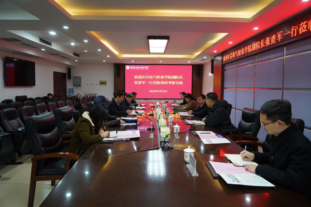 3月23日,许昌电力职业学院副院长张贵军一行到我校参观学习交流。副校长刘守义出席座谈会,党政办公室、后勤管理服务中心、基本建设办公室等部门主要负责人参加座谈会。