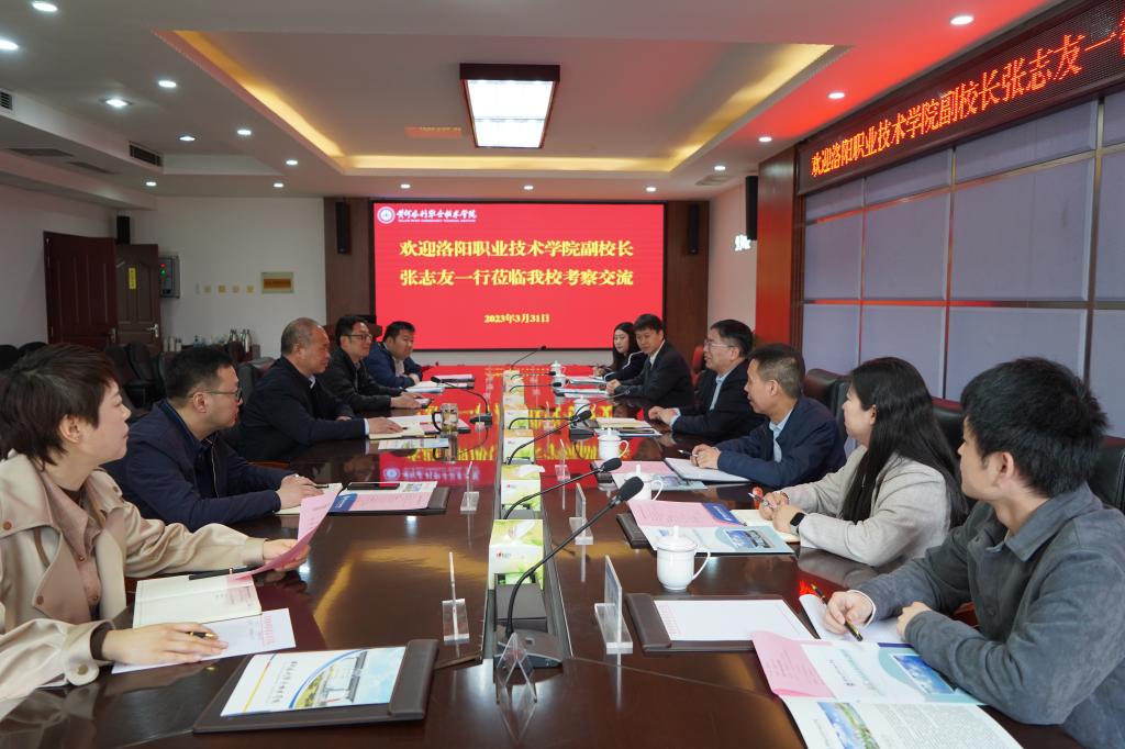 3月31日,洛阳职业技术学院副校长张志友一行到我校考察交流。党委副书记、工会主席杨士恒出席座谈会,“一站式”学生社区党工委、学生处、教务处、团委等部门相关负责同志参加座谈会。