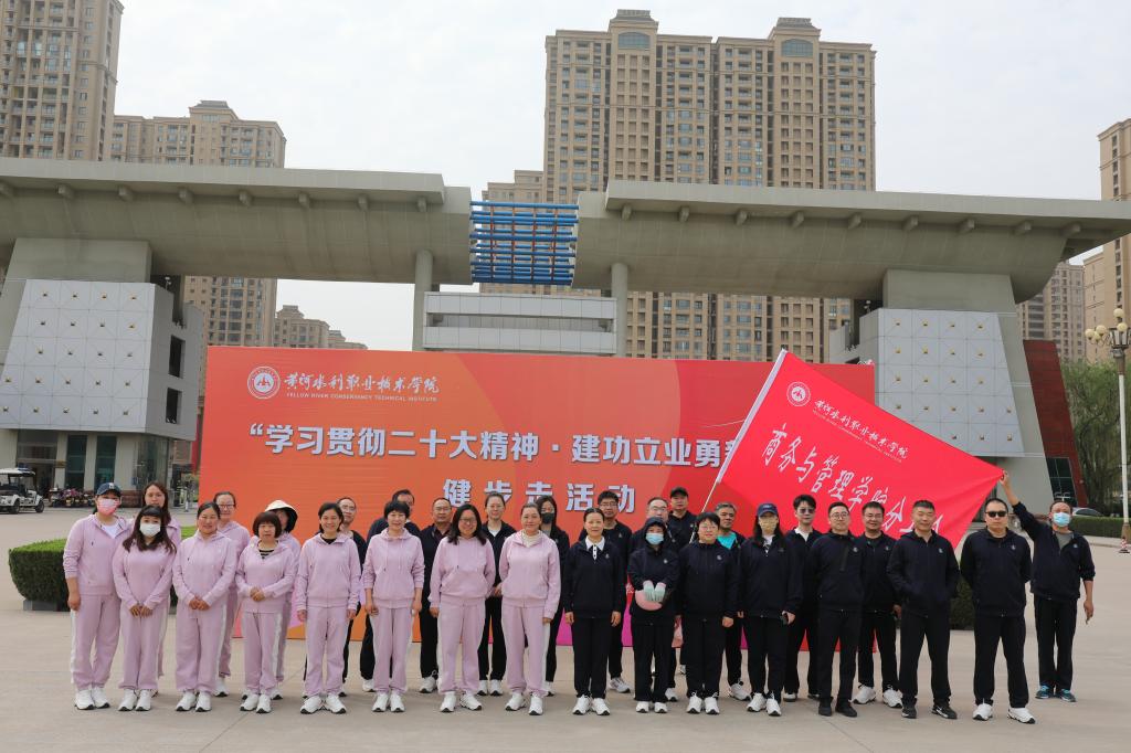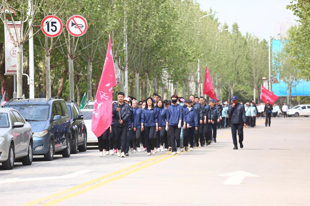 为全面贯彻落实《全民健身计划纲要》精神,推动教职工群体活动深入开展,不断提高我校教职工健康水平,4月13日,校工会组织全校教职工开展校园健步走活动。上午10时,全校教职工以分工会为单位,由学校明志广场沿校园环道绕行两圈。各分工会方阵服装统一、队形整齐、步伐一致、口号响亮,教职员工们精神抖擞、意气风发,在校园的春色美景中燃烧身体卡路里、增长干事创业劲,展示了新时代黄河水院教师热爱生活、积极向上、奋勇争先的精神风貌。