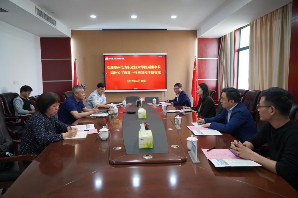 4月18日,郑州电力职业技术学院副董事长、副校长王海霞一行到我校考察交流。副校长刘玉宾出席座谈会,对外联络与合作处处长李纪宾、国际教育学院院长王爱琴等部门负责同志参加座谈会。