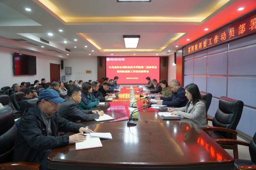 4月24日下午,中共黄河水利职业技术学院第二届委员会第四轮巡察动员部署会在行政楼第一会议室召开。校党委书记、党委巡察工作领导小组组长周保平,党委副书记、巡察工作领导小组副组长杨士恒,纪委书记、巡察工作领导小组副组长朱焕立出席会议,党委巡察工作领导小组成员,巡察组全体成员,被巡察部门及党组织领导班子、相关职能部门负责人、党委巡察工作办公室成员参加会议。会议由朱焕立主持。
