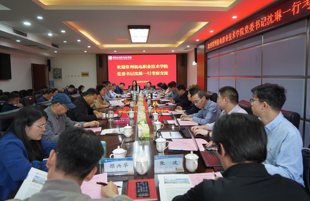 5月9日,常州机电职业技术学院党委书记沈琳带队到我校考察交流。我校党委书记周保平、纪委书记朱焕立出席座谈会,党政办公室、党委宣传部、纪委、教师工作部、教务处、工会、水利工程学院、机械工程学院、电气工程学院、信息工程学院、艺术与设计学院、马克思主义学院等部门、单位相关负责人参加交流座谈。座谈会由朱焕立主持。