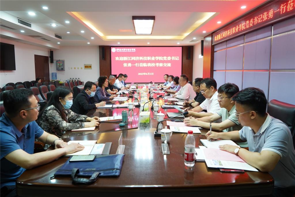 张勇对我校的热情接待表示感谢,对我校悠久的办学历史、先进的办学条件、浓厚的校园文化氛围及办学成效表示赞赏。他简要介绍了浙江同济科技职业学院的基本情况,希望双方就高质量发展经验和特色亮点工作充分交流,共同进步。