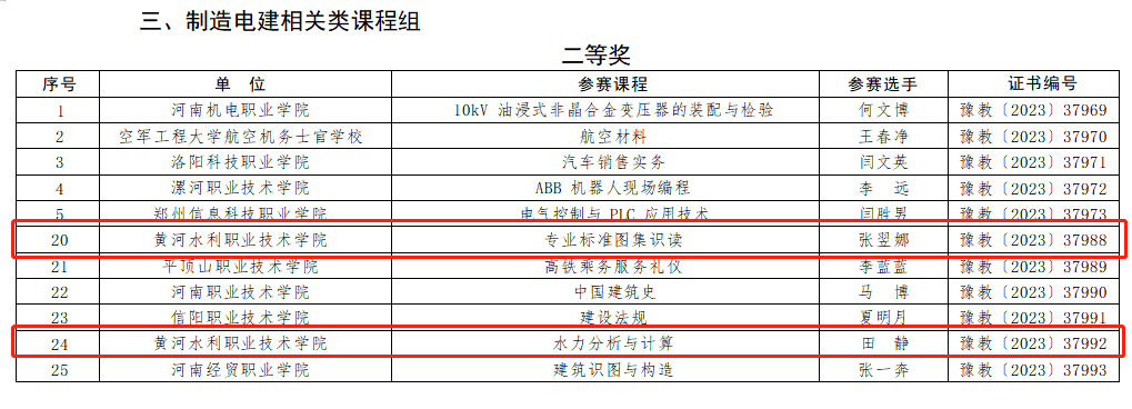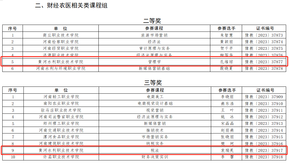 近日,河南省教育厅印发《关于公布2022年河南省高等职业教育课程思政教学创新大赛获奖名单的通知》(教职成〔2023〕191号),我校教师获一等奖1项、二等奖4项、三等奖1项