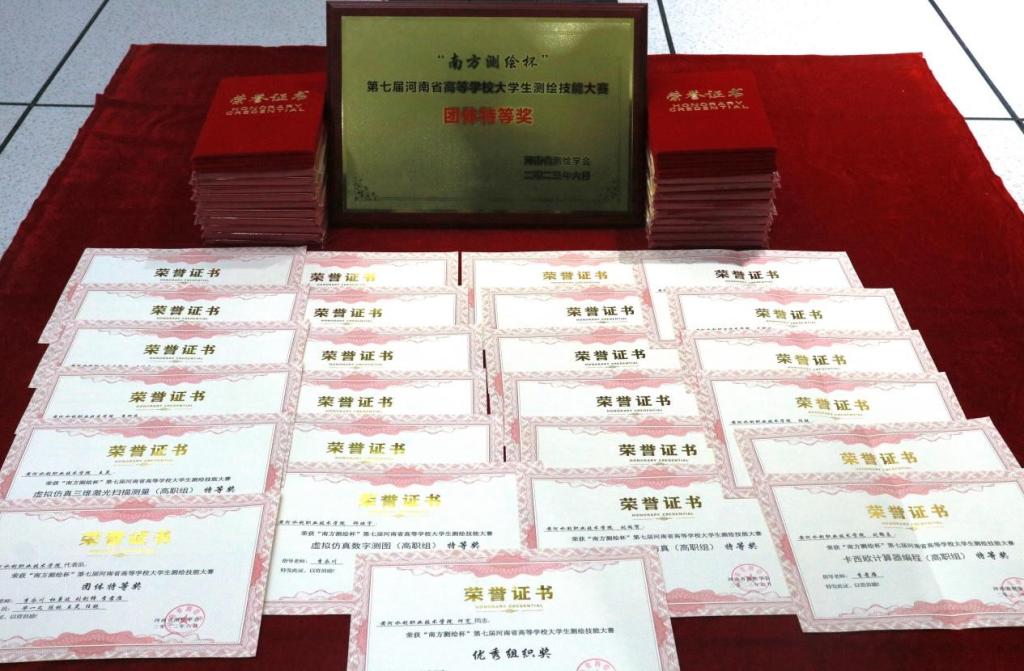 6月9日-11日,“南方测绘杯”第七届河南省高等学校大学生测绘技能大赛在华北水利水电大学龙子湖校区举行,来自全省29所高校466支代表队的510名选手参赛。我校选派20名学生和4名指导老师在“虚拟仿真数字测图竞赛”“无人机航测虚拟仿真竞赛”“虚拟仿真三维激光扫描”和“卡西欧计算器编程”四个高职组赛项展开激烈角逐。最终取得15个特等奖、3个一等奖和1个二等奖的骄人成绩,并囊括了四个赛项的第一名。李孝雁、李永川、杜勇波、刘剑锋四名指导教师全部荣获优秀指导教师奖,我校代表队荣获团体特等奖。我校获优秀组织奖,是唯一获此奖项的高职院校。