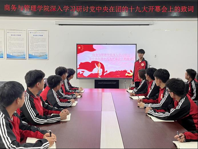 6月19日,中国共产主义青年团第十九次全国代表大会在北京隆重开幕。习近平、赵乐际、王沪宁、丁薛祥、李希等党和国家领导人到会祝贺,蔡奇代表党中央致词。6月21日,我校各级团组织在青年之家、各学院会议室召开党中央在中国共产主义青年团第十九次全国代表大会上的致词学习研讨会。各级团干部、学生干部、团员青年参加会议。