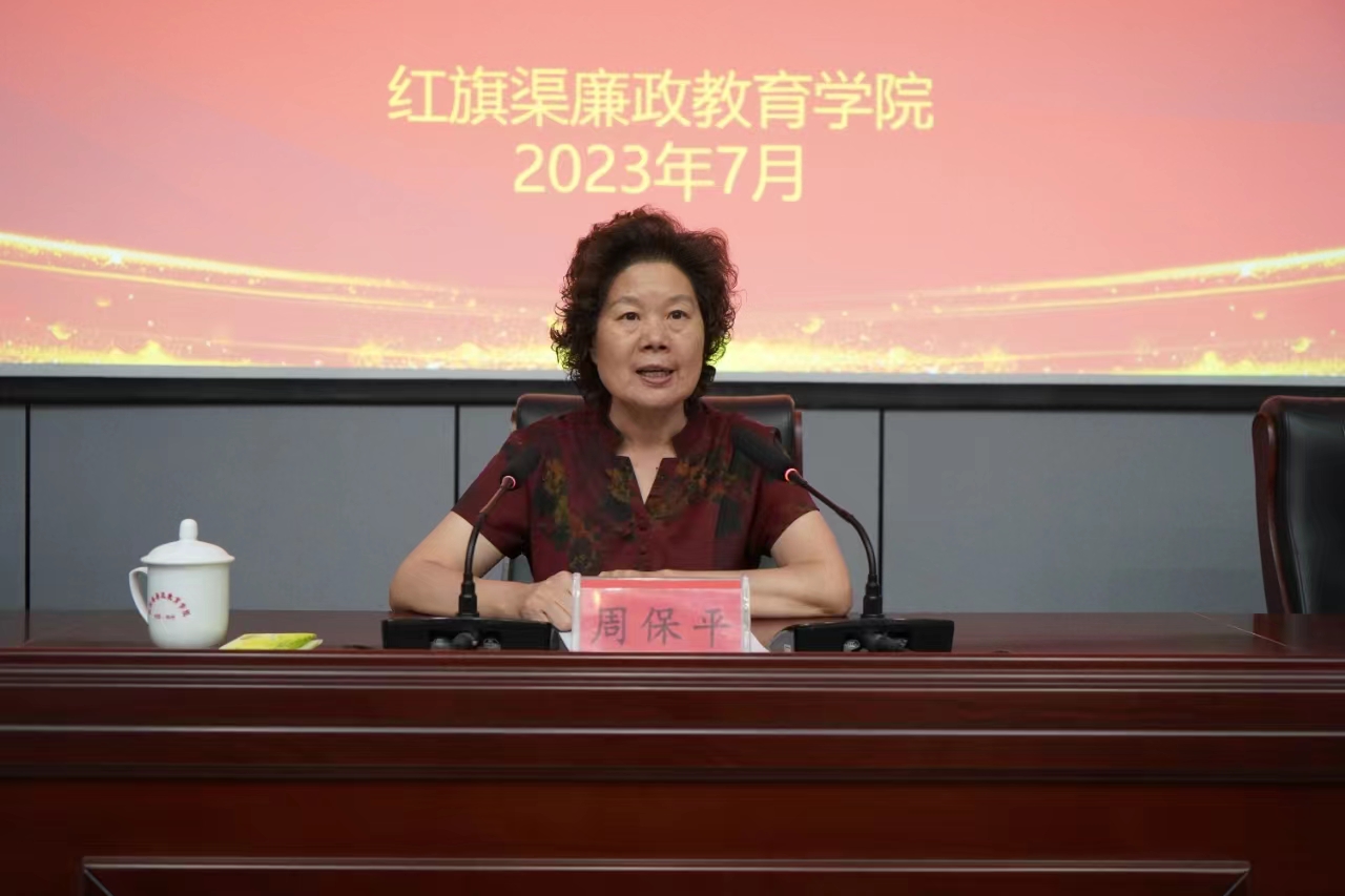 周保平指出,把培训班放在红旗渠廉政教育学院,就是要让我们牢记“自力更生、艰苦创业、团结协作、无私奋献”的红旗渠精神,充分传承和弘扬红旗渠精神中的红色基因和廉洁元素,进一步把红旗渠精神传承下去并发扬光大。她以红旗渠修建期间孕育出的廉洁故事和我校校友吴祖泰事迹为切入点,结合我校当前工作实际,提出四点工作要求。一是要深学细悟习近平总书记关于加强纪检监察干部队伍建设系列重要论述,牢记习近平总书记和党中央的殷殷重托,坚持把学习成效转化为推动学校纪检监察工作高质量发展的强大动力。二是要从革命前辈身上汲取不断前行的精神动力,赓续对党忠诚干净担当的基因和血脉,始终在思想上政治上行动上同党中央保持高度一致。三要严明纪律,执纪者必先守纪,律人者必先律己,立足专责监督职能作用,提升纪检监察队伍履职能力,着力发挥监督保障执行、促进完善发展作用。四要深化能力作风建设,精准把握运用监督执纪“四种形态”,坚持不懈纠治师生群众身边腐败和“四风”顽疾,持续推进全面从严治党,持之以恒正风肃纪。