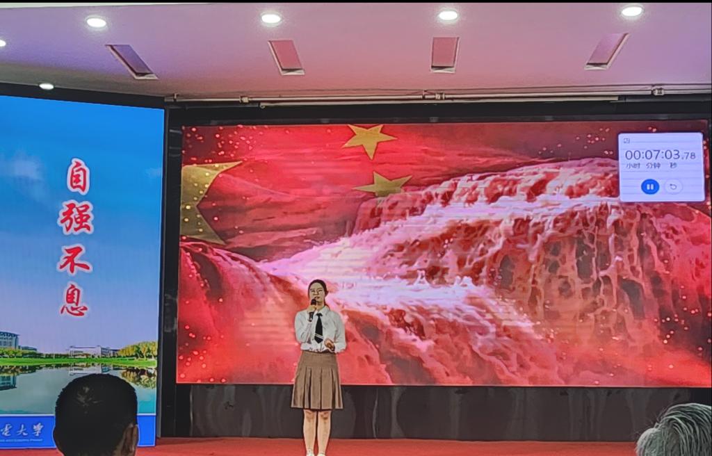 参赛选手叶好以《我心底的黄河情》为题,从治国治水史解读领先世界的黄河文明,从唐诗宋词里分析华夏儿女的血脉传承,从精神号角中追寻坚强不屈的品格。演讲情深意切,纵横古今,时而细腻、时而豪放,切换自如,在优美的旋律中娓娓道出黄河水院学子对黄河的挚爱与守护。