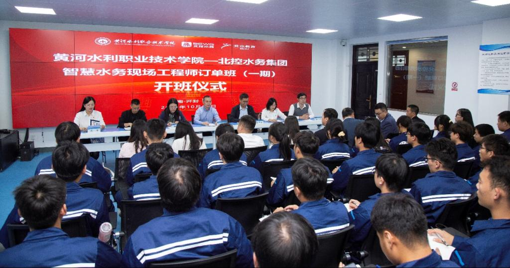 10月17日下午,黄河水利职业技术学院-北控水务集团有限公司“智慧水务现场工程师”订单班(一期)开班仪式在我校八号实训馆隆重举行。我校副校长朱焕立,北控水务集团北水教育总经理冀广鹏、东部大区副总经理马少娜出席仪式,学校教务处、环境工程学院主要负责人,订单班全体学生参加本次仪式,仪式由环境工程学院院长冯峰主持。