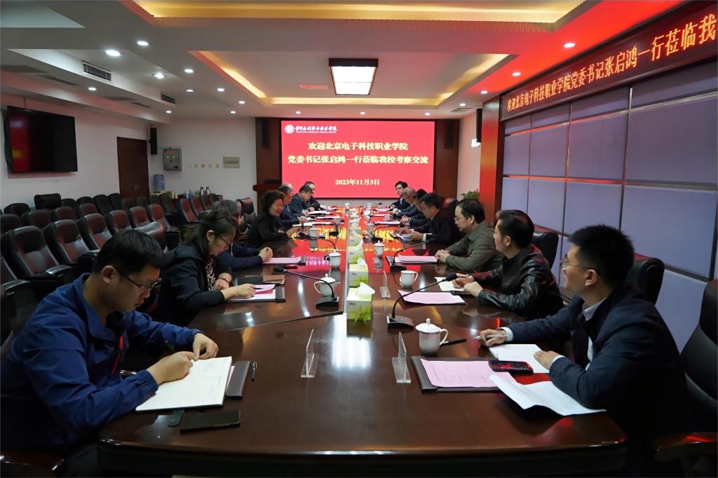 11月3日上午,北京电子科技职业学院党委书记张启鸿等一行7人到校进行考察交流。我校党委书记周保平、副校长朱焕立、纪委书记刘许亮出席座谈会,党委宣传部、教师工作部、教务处、发展规划处、“双高”办公室等部门负责人参加交流座谈。