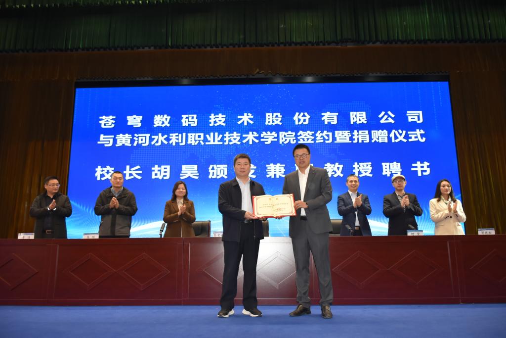 11月7日下午,苍穹数码技术股份有限公司(以下简称“苍穹数码”)与黄河水利职业技术学院捐赠协议签约暨苍穹地理信息平台捐赠仪式在大学生活动中心成功举行。我校党委副书记、校长胡昊,副校长朱焕立,苍穹数码总工程师、正高级工程师刘旭,河南区总经理李浩、项目主管张九肆等出席签约暨捐赠仪式,测绘工程学院相关负责人、教师及学生代表500余人参加仪式。仪式由测绘工程学院副院长何宽教授主持。