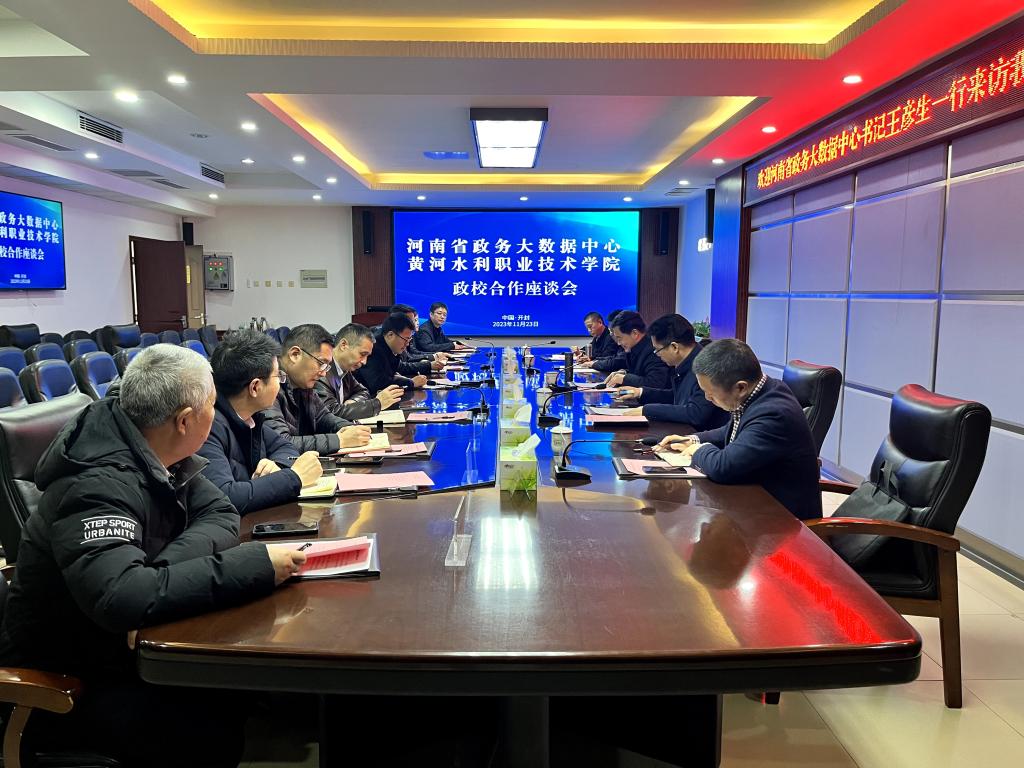 胡昊详细介绍了学校办学历史、办学特色、办学成效等基本情况。他指出,学校作为河南省职业教育信息化标杆学校,牵头落实省委省政府“十大战略”,希望能与省政务大数据中心共同探索和推广职业院校信息化建设新范式;依托学校的河南省全民数字化素养和技能培养基地和牵头成立的河南省高等职业教育大数据研究中心的优势,在师资和信息技术培训方面,在校园治理,借助数字孪生服务水利等方面,共同合作,开展研究和培训;双方利用彼此人才资源联合成立政校合作新平台,开展更多的社会服务和科学研究,实现学校从专科赛道跨越到本科赛道。