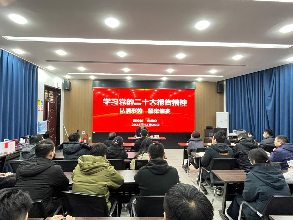 为深入学习贯彻习近平新时代中国特色社会主义思想,贯彻落实党的二十大报告精神,12月25日下午,副校长朱焕立为环境工程学院师生讲授《学习党的二十大报告精神——认清形势 坚定信念》专题党课。学院党员教师及学生代表参加专题讲座,会议由党总支书记冯涛主持。