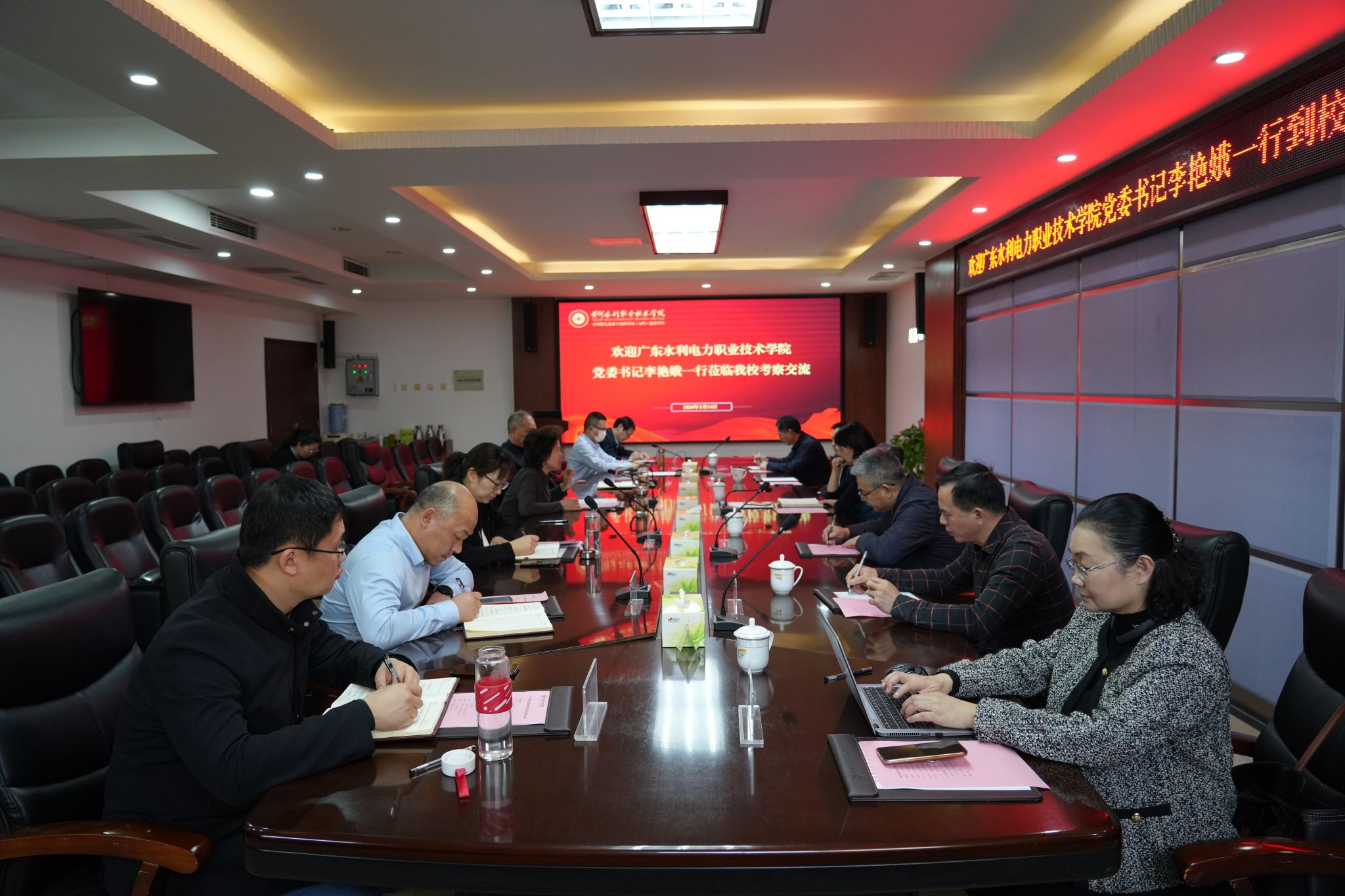 李艳娥对我校的热情接待表示感谢,对我校的办学历史、专业建设及校园文化氛围等成绩表示赞赏,对我校“双高”建设以来取得的优异成绩表示祝贺。她简要介绍了广东水利电力职业技术学院情况,希望两校今后加强合作,优势互补,在加快构建现代职业教育体系的全新赛道上取得新成绩。
